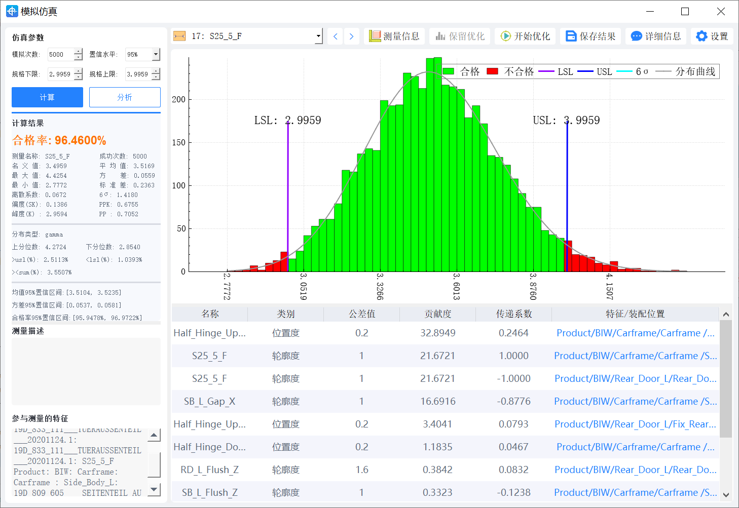 · 贡献度计算,找出对测量影响最大的特征或公差