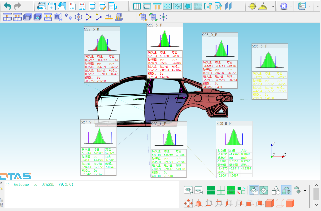 • 汽车前门公差仿真分析,分析门打开过程中与周边零件的最小缝隙。